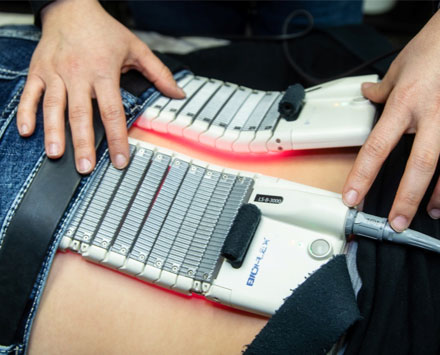 Laser therapy is a non-invasive modality that offers patients a safe and effective therapy. Laser therapy is suitable for a wide range of medical conditions including soft tissue and sport injuries along with a variety of musculoskeletal issues. It works to eliminate pain and restore range of motion of the patient.