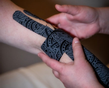 Dynamic Tape is used to improve proper posture, pain and overall movement of the body. It can assist with reducing the force put on the muscles that are experiencing discomfort. Dynamic Tape can also help when an injury has occurred and weakness is present in the area. Some of the more common areas for Dynamic Tape may be ankle sprains, strains, plantar fasciitis and conditions involving the elbow such as tennis elbow or golfers elbow.